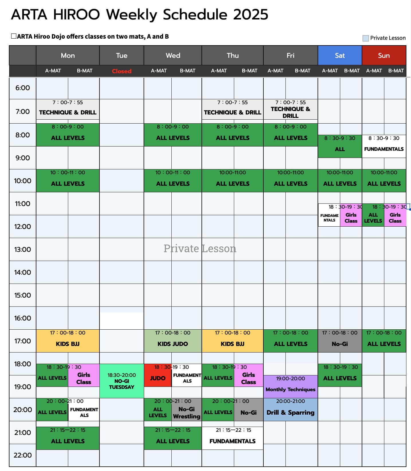 ARTA BJJ HIROO ではミスマッチを極力なくすため見学をオススメしています。直接インストラクターにいろいろ聞きたい、などございましたら何度でもお気軽に足をお運びください。